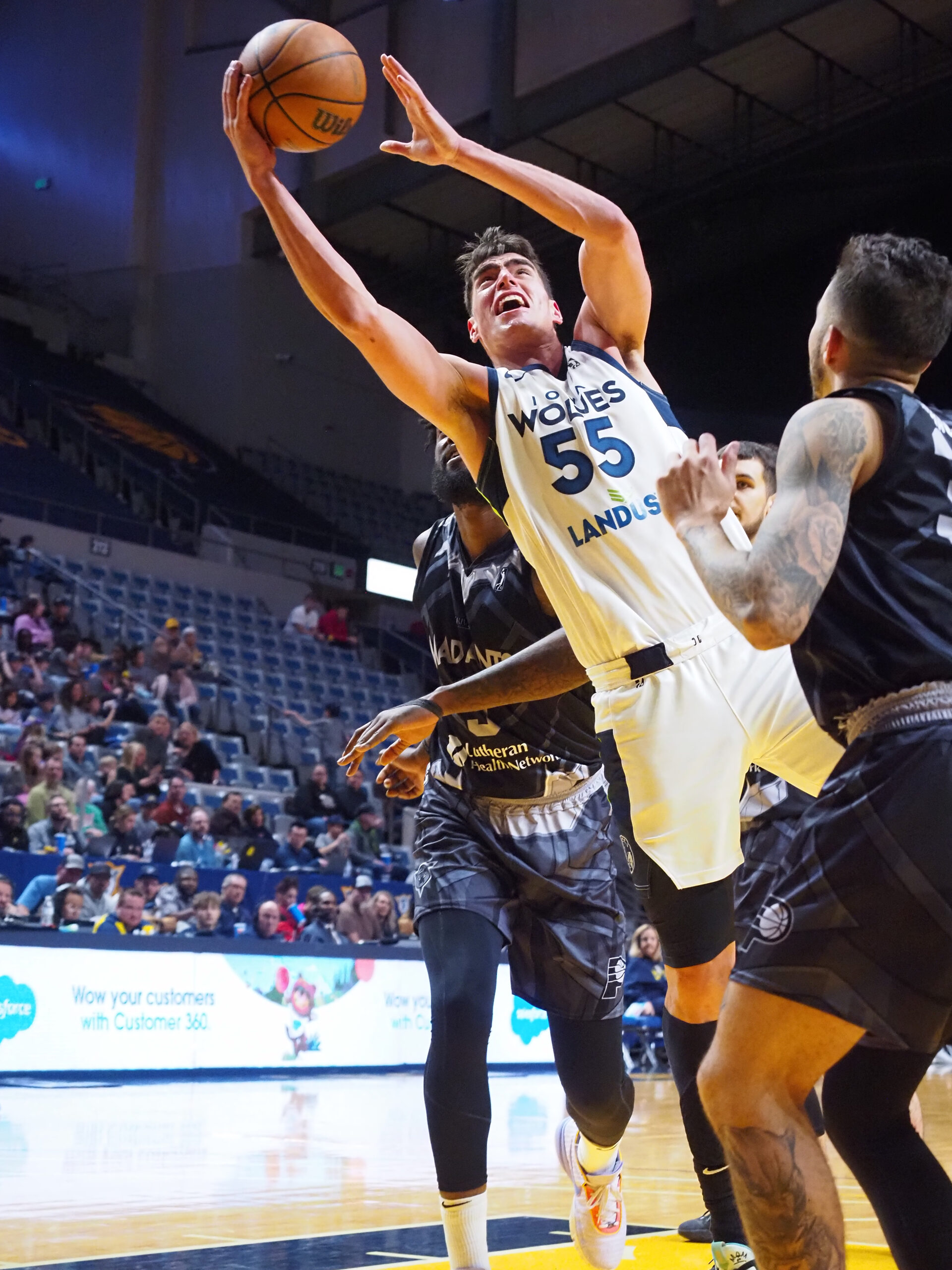 AJ Lawson, who scored 19 points in the loss, knocked down a three for the Wolves last lead at 123-120 with 2:29 left in the game. Fort Wayne quickly took the lead back with consecutive jumpers. However, Lawson answered with a driving basket that drew a block foul. The blocking call was challenged unsuccessfully by Fort Wayne, but Lawson missed the free throw that could have put Iowa up one.
